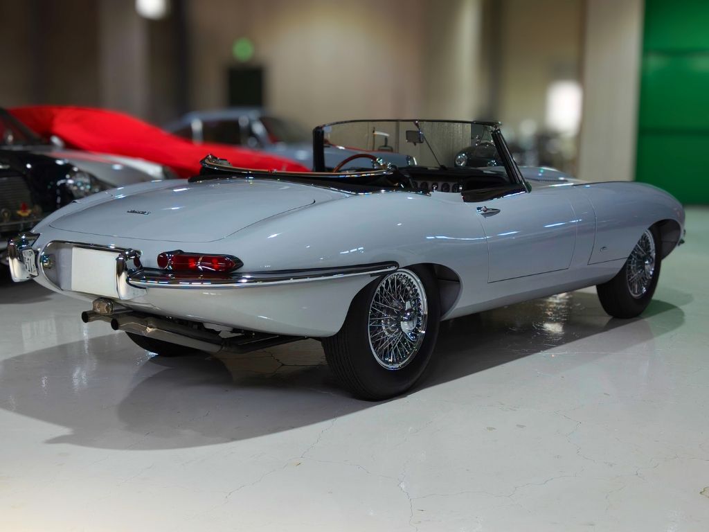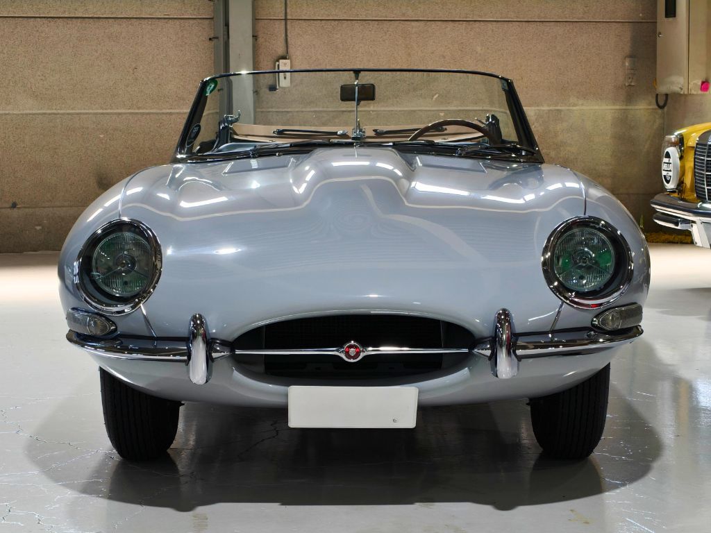 1962年式 ジャガーE-Type シリーズ1。かつて“世界で最も美しいクルマ”と称され、エンツォ・フェラーリすらそのデザインに讃辞を贈ったこのモデルは、今もなおクラシックカー界の頂点に君臨し続けています。艶やかに伸びるロングノーズ、なだらかに落ちるファストバックのリア、そしてそのすべてを包む流麗なボディラインは、機能美と芸術性の見事な融合です。